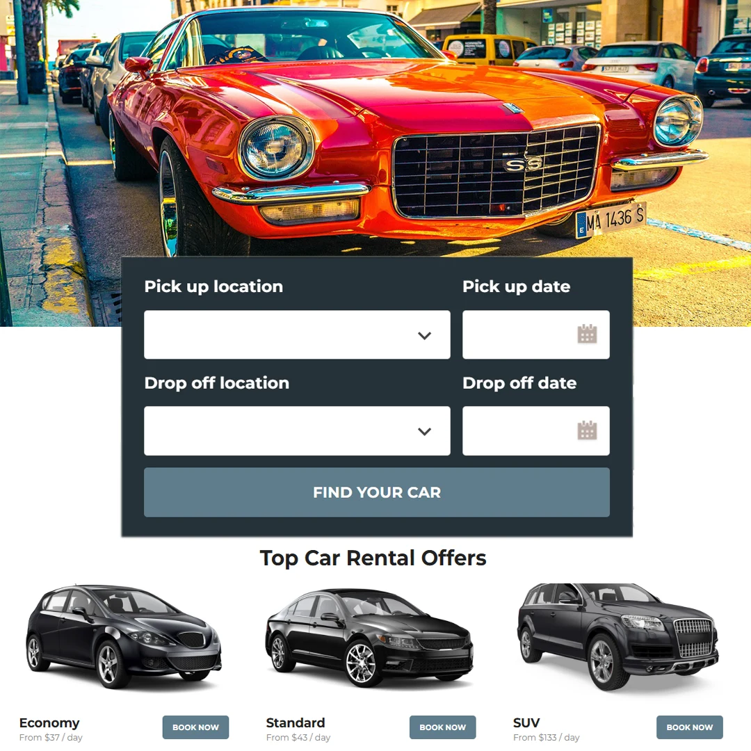 - Zero-commission car rental website – keep 100% of every booking