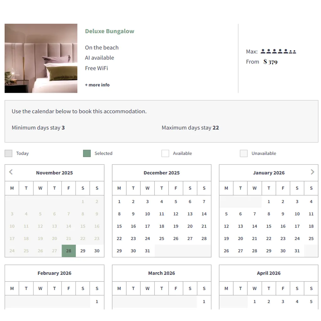✔ Full direct booking system (no Booking.com, no Expedia fees)